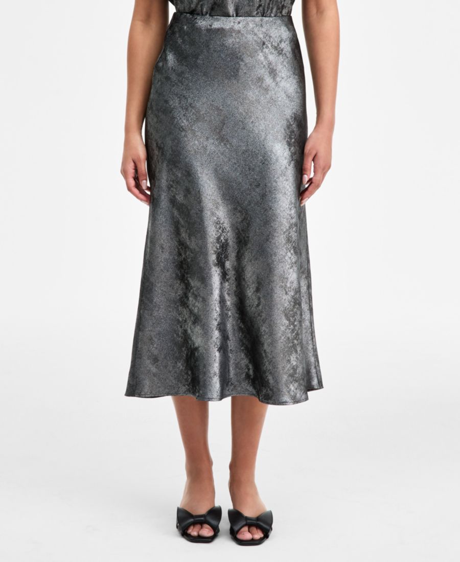 Гладкая и блестящая металлизированная ткань придает элегантность этой шикарной юбке миди от On 34th, смелому и стильному варианту, который можно сочетать с бесчисленным количеством нарядов или с подходящей майкой. О БРЕНДЕ: Наш бренд создан для женщин, таких как вы, и вместе с ними. Создан для вашего тела, вашего стиля и вашей уверенности в себе. Эти вещи, которые станут лучшим другом вашего гардероба, легко сочетаются со всем, что есть в вашем шкафу.