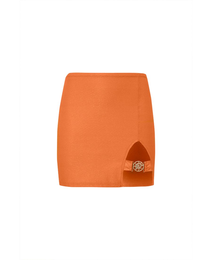 Алая юбка оранжевого цвета излучает тепло летнего заката, а золотистые блестящие акценты на ткани переливаются, как первые лучи рассвета, создавая восхитительное сочетание цветов, воспевающее красоту природы. Изготовленная из высококачественного материала, алая юбка является истинным воплощением красоты природы, передавая суть лета, веселья и вневременного очарования.