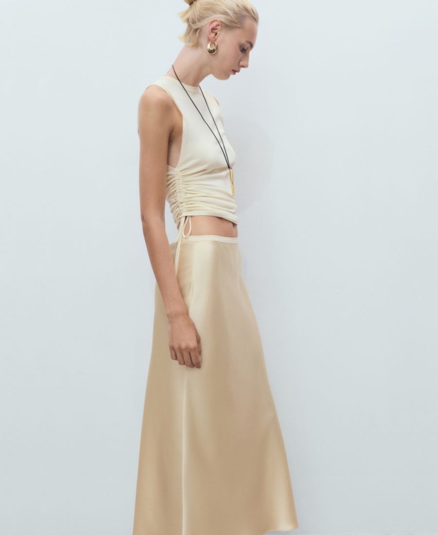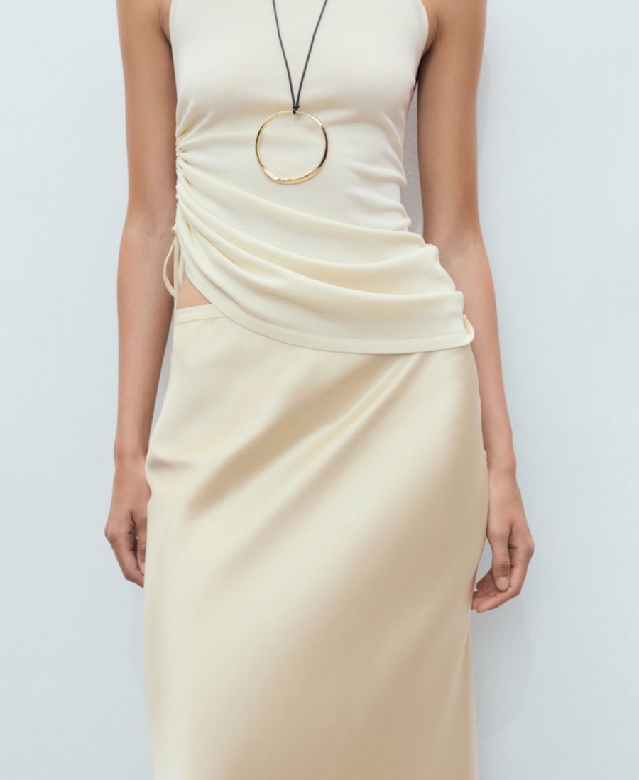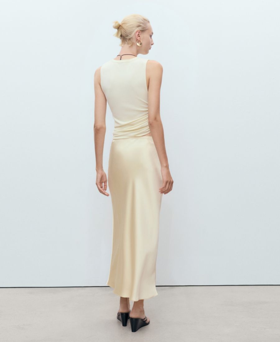 Женская атласная юбка миди MANGO, Pastel Yellow