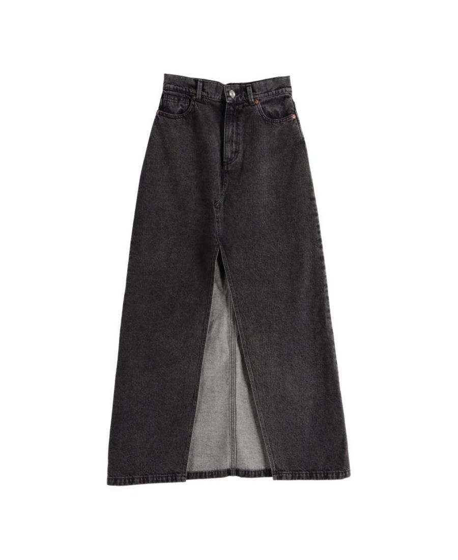 Юбка Мариана - это удлиненная юбка из денима классического прямого силуэта. Как и настоящие джинсы, она имеет пять карманов, петли для ремня и заклепки. Юбка сидит на бедрах и имеет разрез по низу, идеально подходящий для ношения поверх высоких сапог.