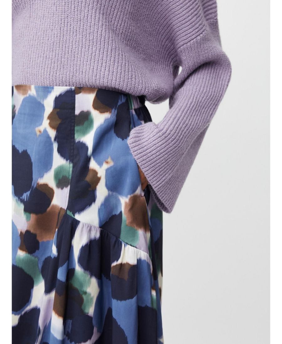 Эта воздушная вискозная юбка с ярким батиковым принтом идеально подходит для создания непринужденно стильного образа. Она имеет прорезные карманы по бокам, эластичный пояс сзади и женственные складки по бокам для дополнительной пышности.