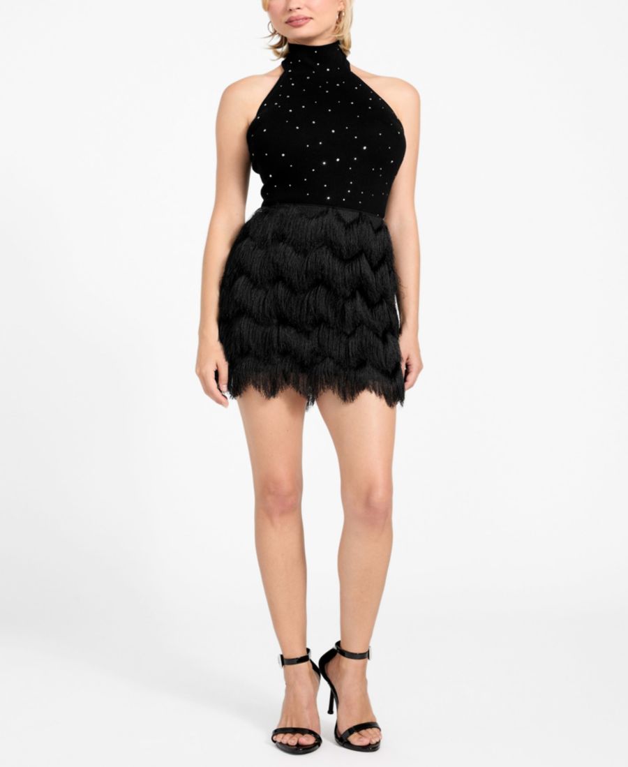 Женская мини-юбка Alyna с бахромой GUESS, Jet Black