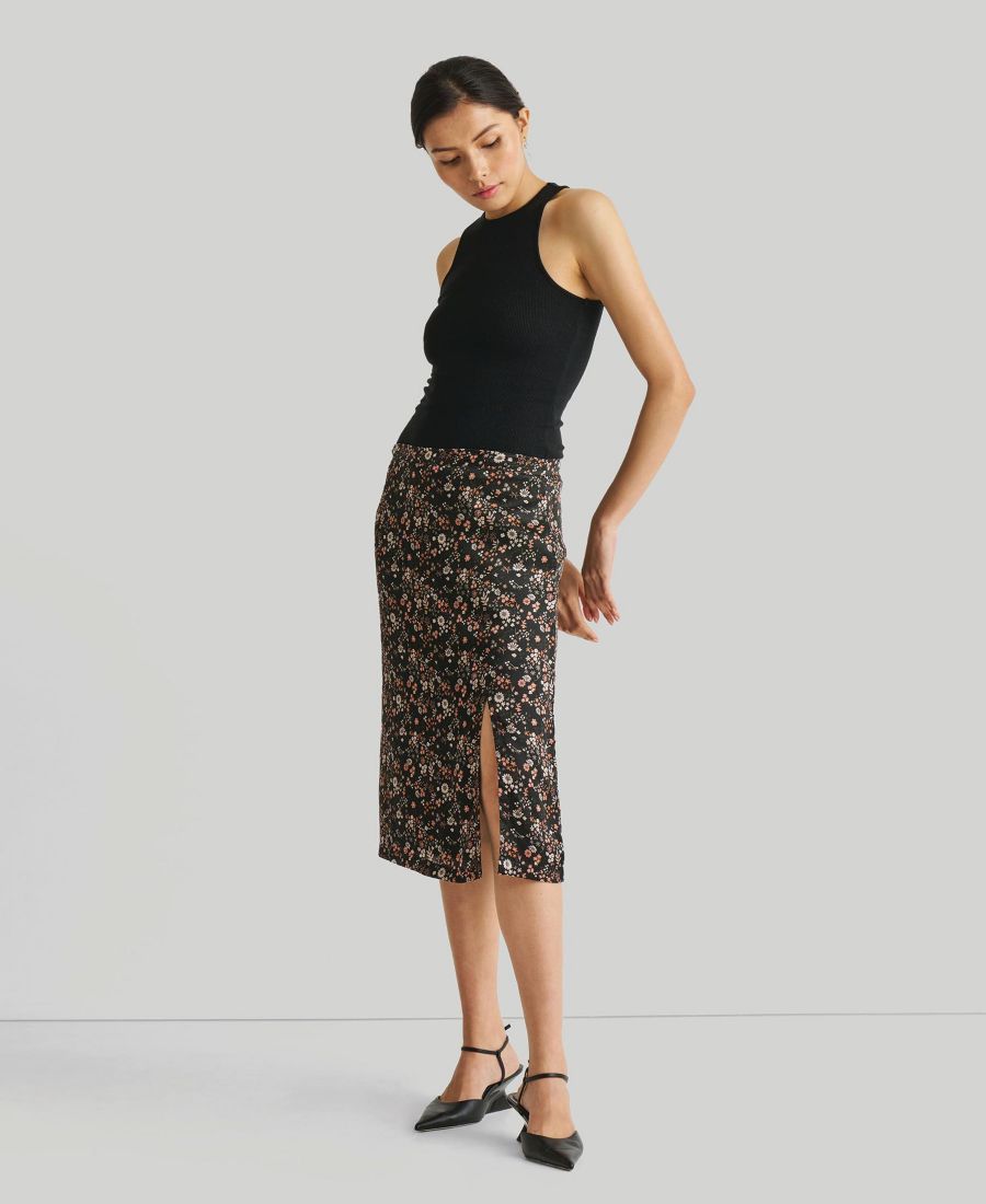 В этой винтажной юбке-комбинации с цветочным принтом и разрезом спереди, сшитой из экологически чистой ткани Bemberg, есть что-то невероятно очаровательное. Ее легко можно надеть на работу или на вечеринку.