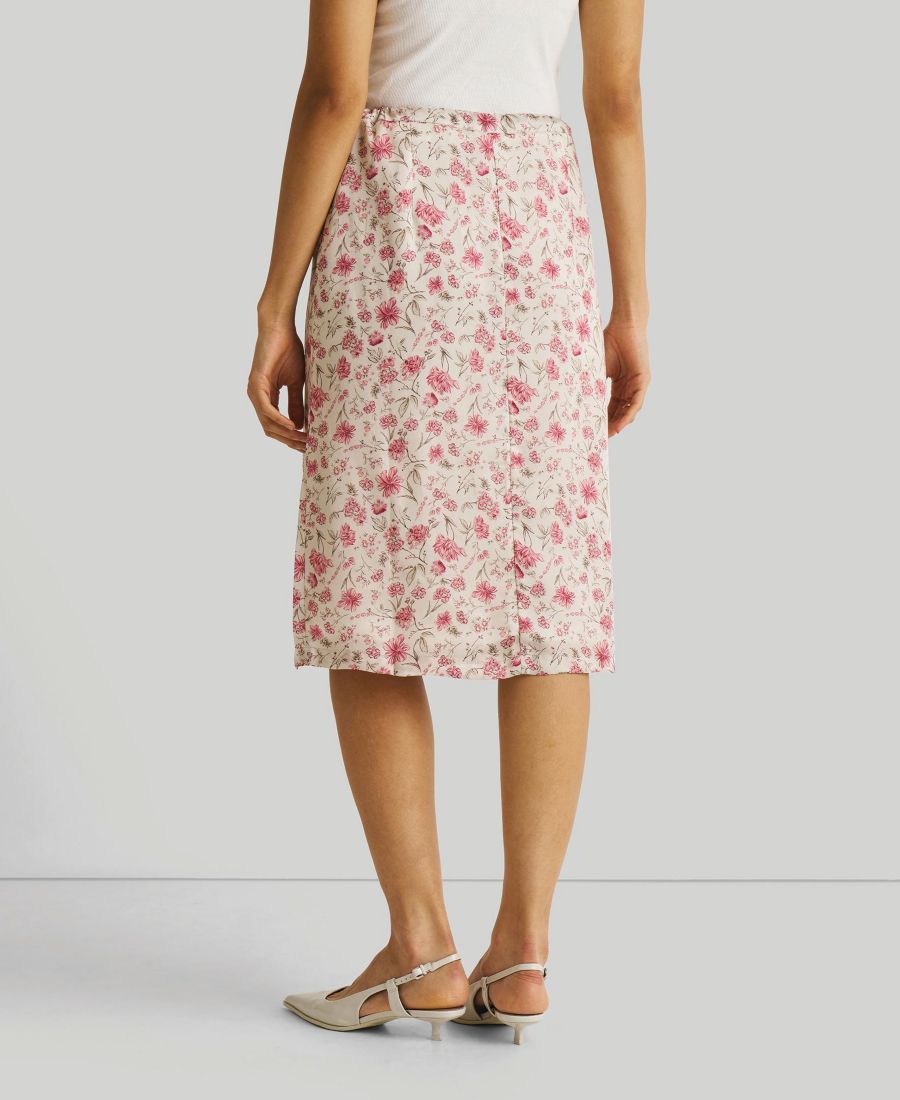 В этой винтажной юбке-комбинации с цветочным принтом и разрезом спереди, сшитой из экологически чистой ткани Bemberg, есть что-то невероятно очаровательное. Ее легко можно надеть на работу или на вечеринку.