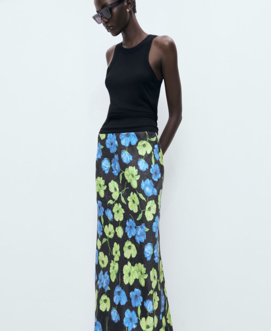 Женская длинная юбка с цветочным принтом MANGO, Black