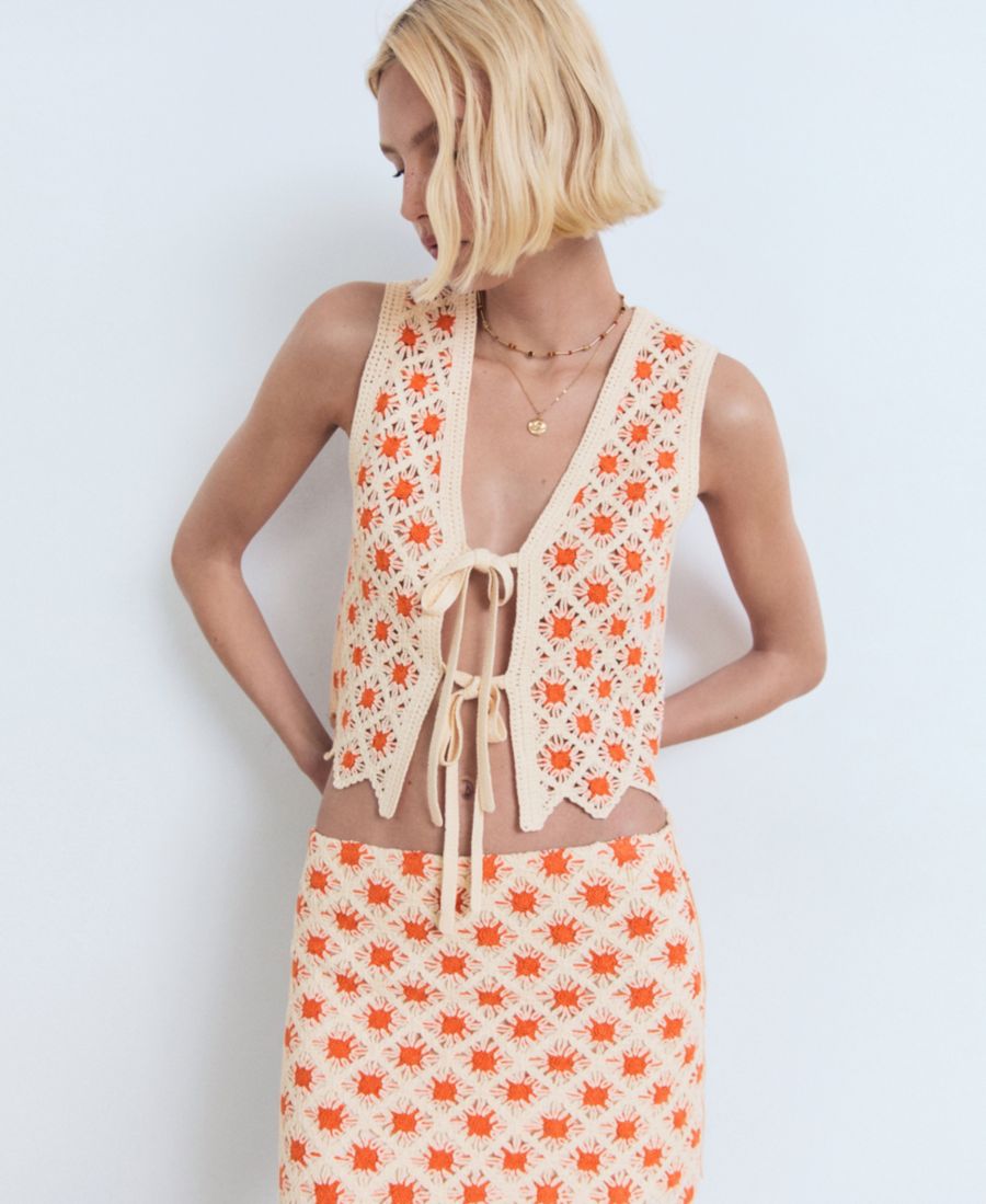 Женская вязаная крючком мини-юбка MANGO, Orange