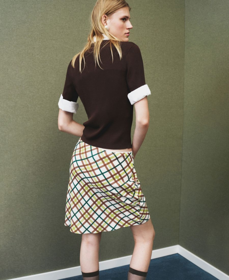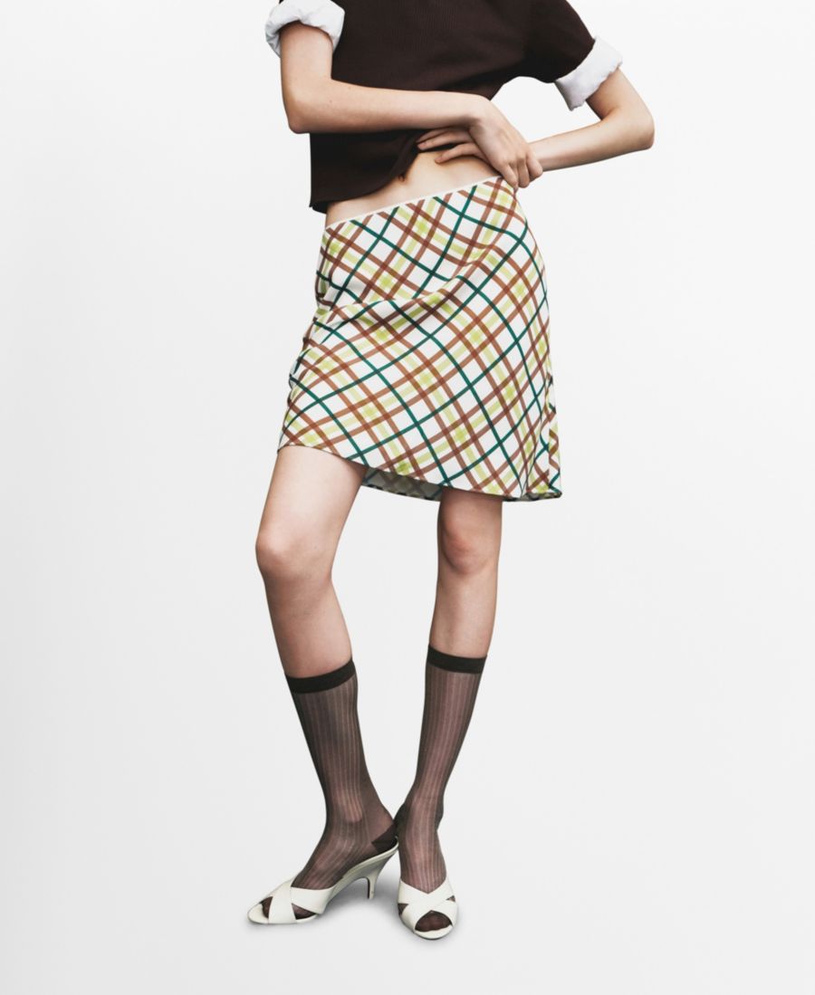 Женская короткая клетчатая юбка MANGO, Off White 6 948₽