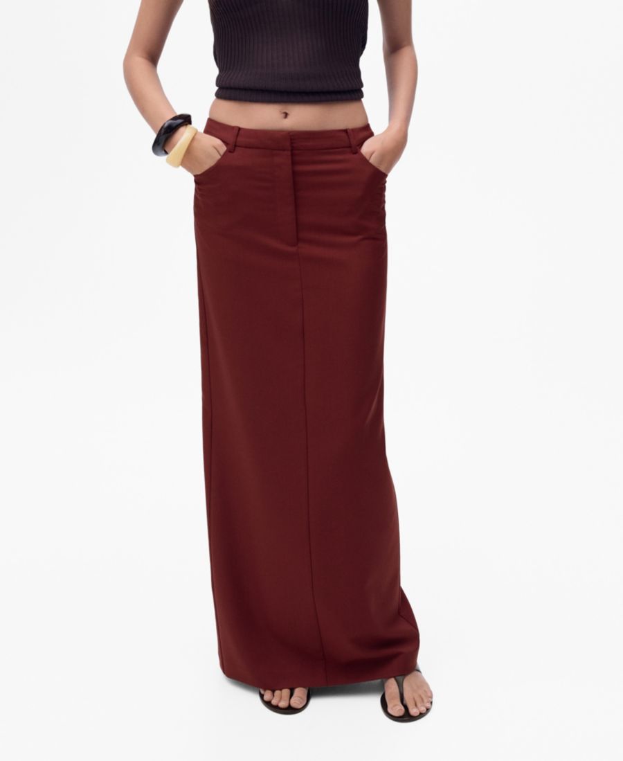 Женская длинная юбка-карандаш с разрезом MANGO, Burgundy