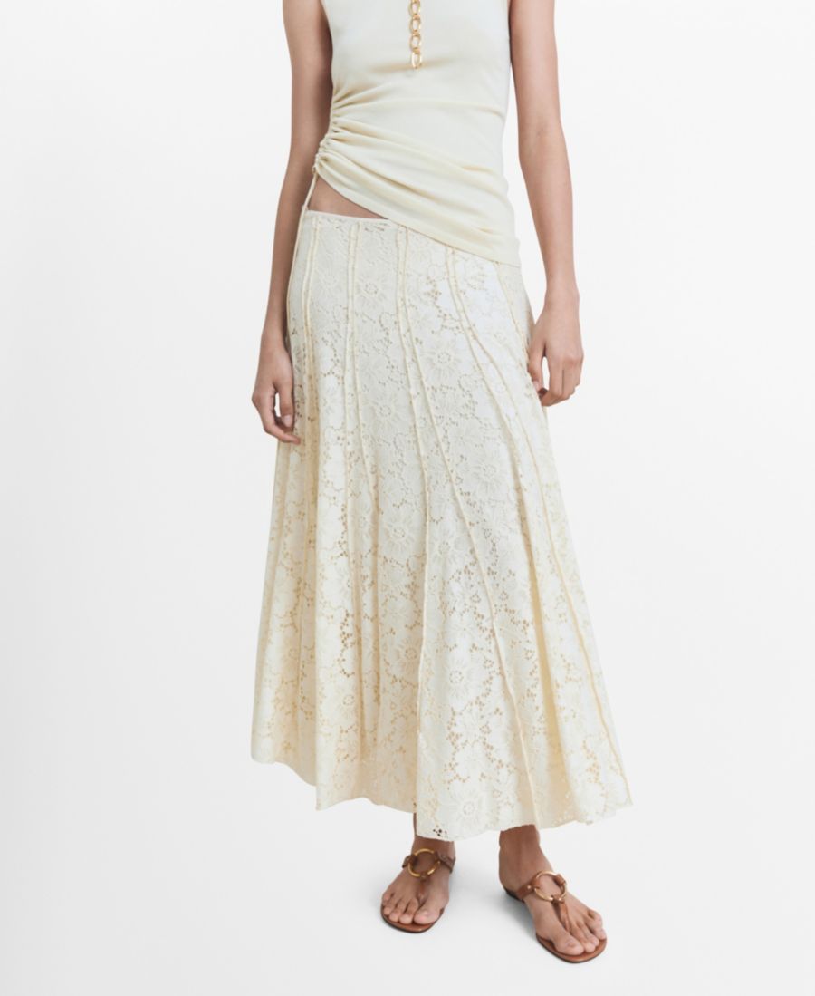 Женская длинная кружевная юбка MANGO, Ecru