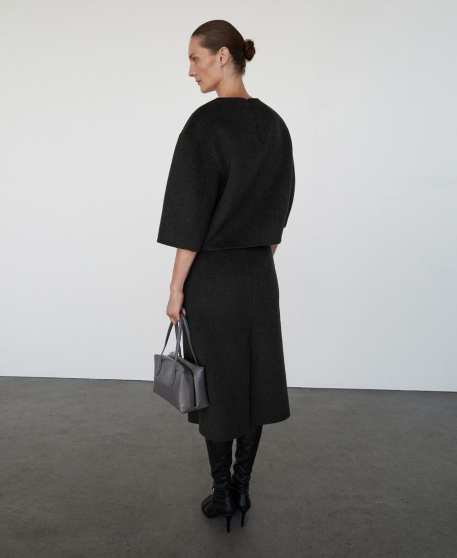 Женская шерстяная юбка миди с разрезом MANGO, Gray