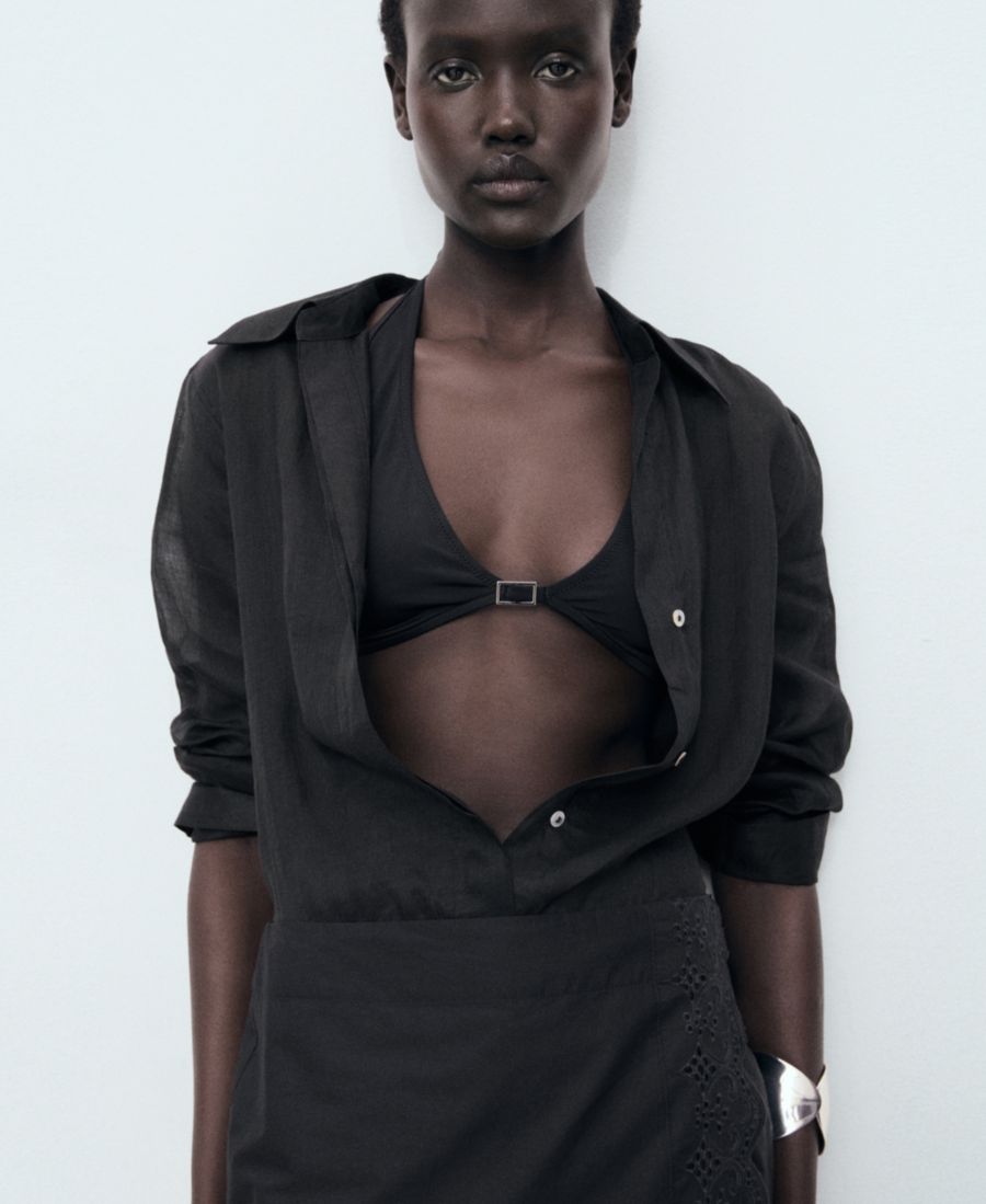 Узорчатая отделка отличает вышитую хлопковую юбку от Mango. Эта юбка миди имеет прямой крой.