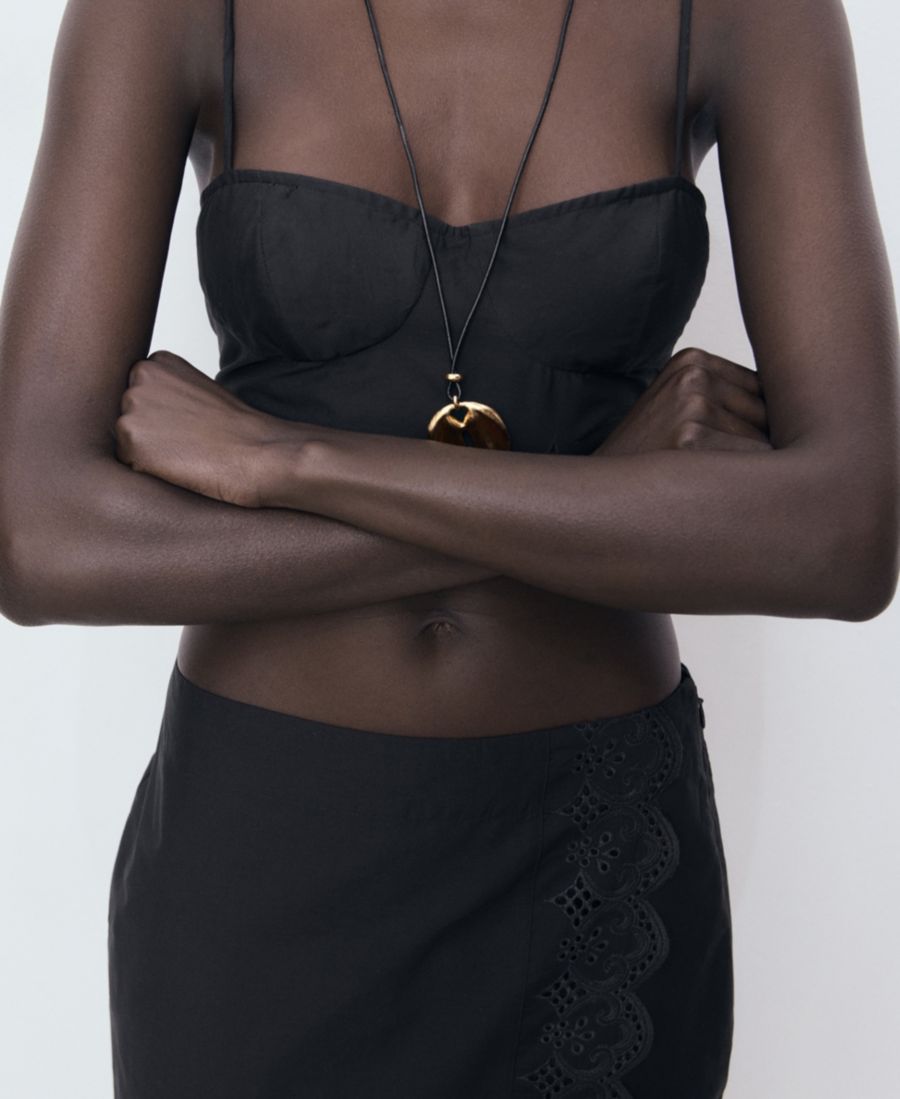 Женская хлопковая юбка с вышивкой MANGO, Black