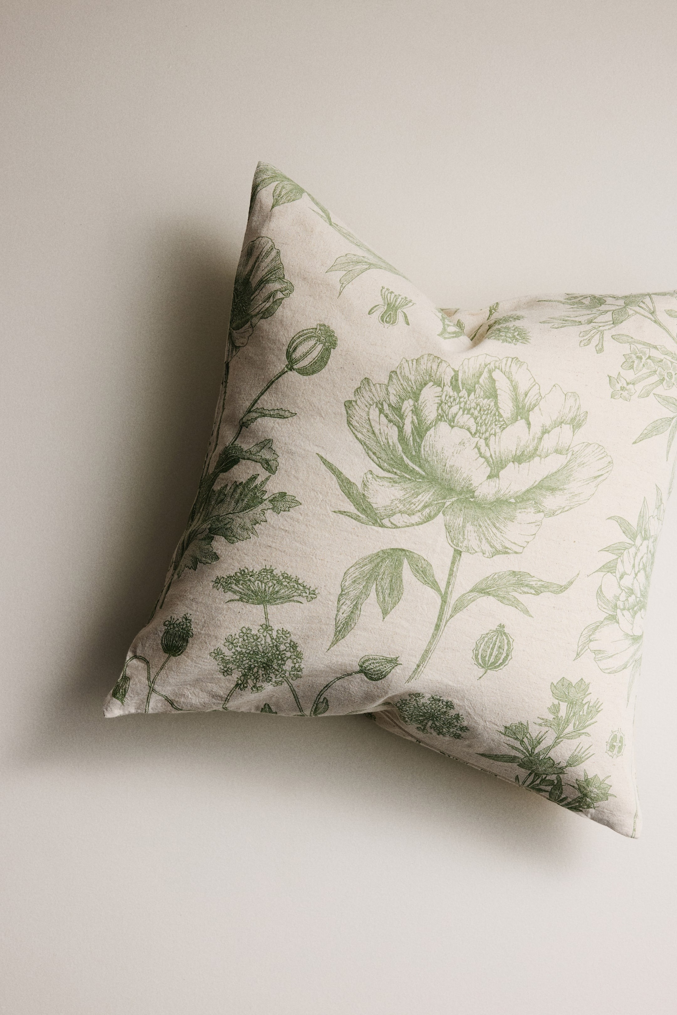 Эта тканая наволочка изготовлена из смеси хлопка и льна и украшена цветочным узором. Она имеет боковую застежку-молнию.