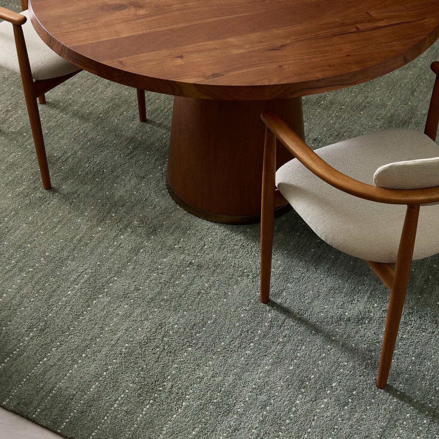 Практичность: 100% шерсть в цвете Vetiver Green очень практична. Это натуральный, «природный» оттенок, который отлично маскирует повседневную пыль и мелкие загрязнения.