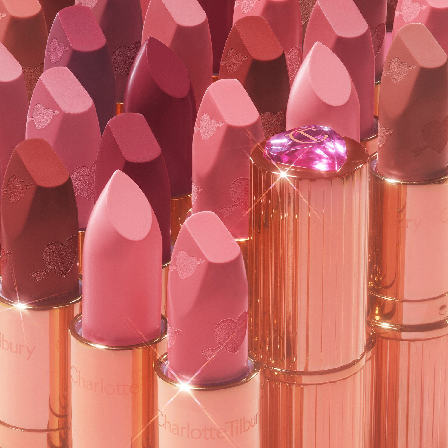 Лимитированная серия помад содержит увлажняющую, шелковистую формулу KISSING от Шарлотты и отмеченную наградами увлажняющую формулу Matte Revolution. Коллекционные издания в цвете розового золота украшены розовыми стразами в форме сердечек, которые отражают свет и символизируют любовь! Это и есть эффект любви! ОТТЕНКИ ФОРМУЛЫ KISSING: