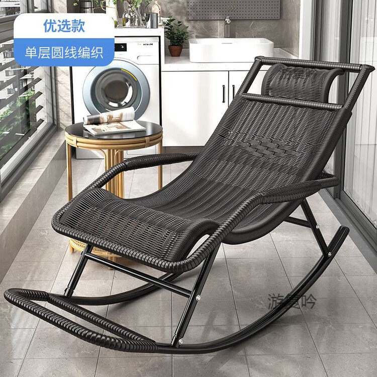 Fantasy Кресло-качалка из ротанга, черное, single layer round line