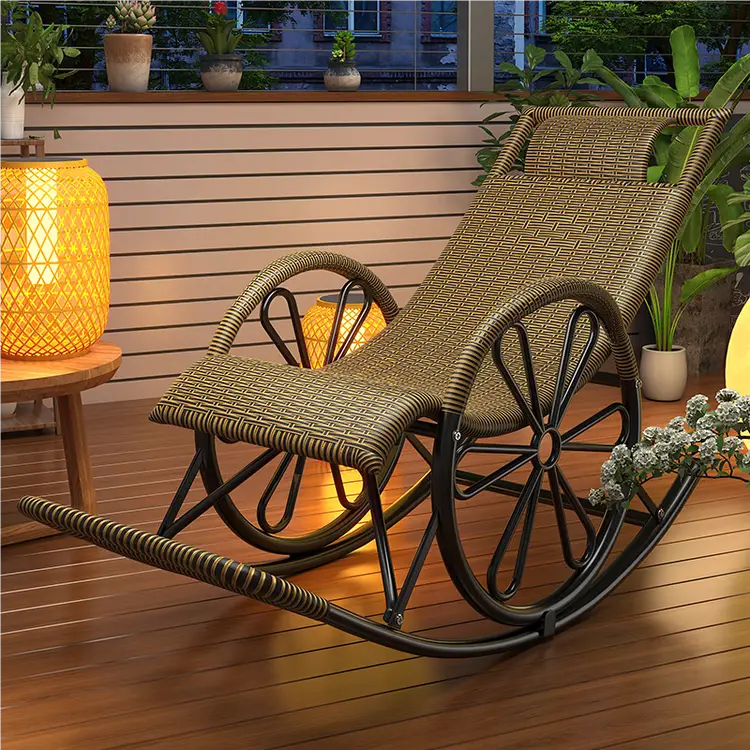 Fantasy Кресло-качалка из ротанга в стиле double-layer flat wire, цвет gold
