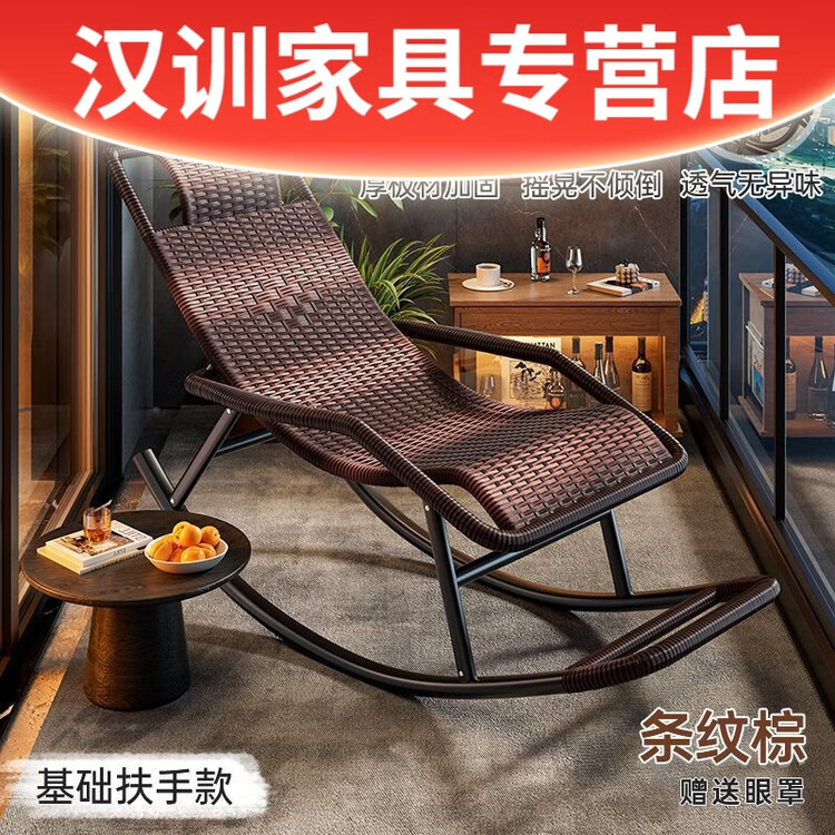 FANCYCHIC Кресло-качалка для взрослых, модель basic armrest model, коричневый, с подушкой и маской для сна