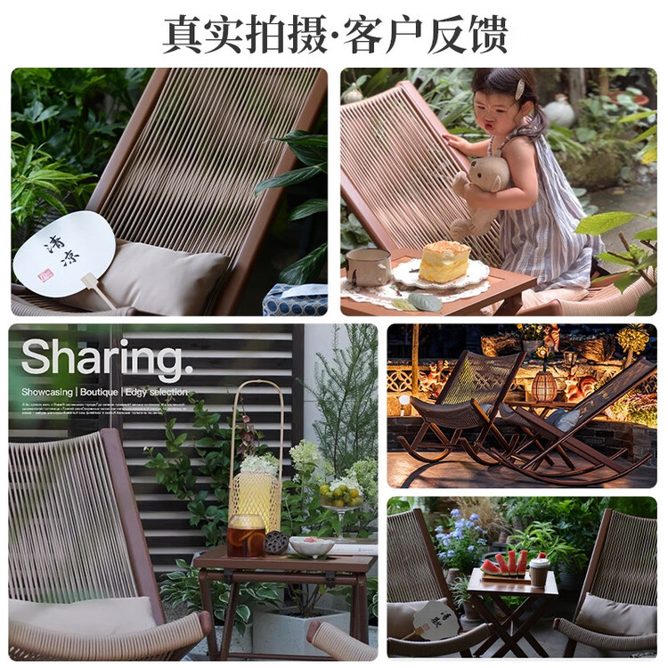 Yu Senyi Кресло-качалка из ротанга с откидным столиком, 2 предмета
