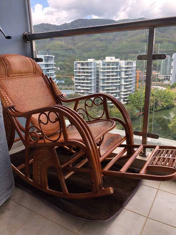 A rocking chair with a carpet