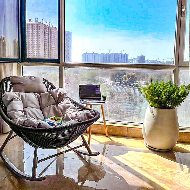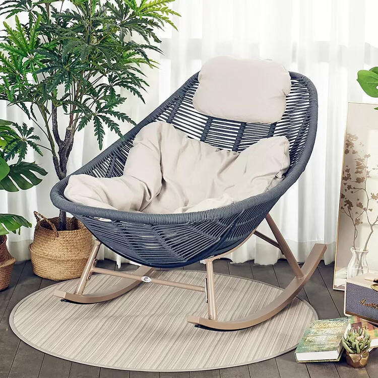Purple Leaf Кресло-качалка из ротанга aodun с подушкой