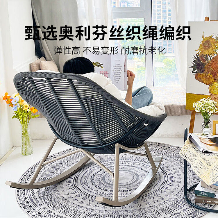 Aodun Rocking Chair + Thickened Seat Cushion (White)