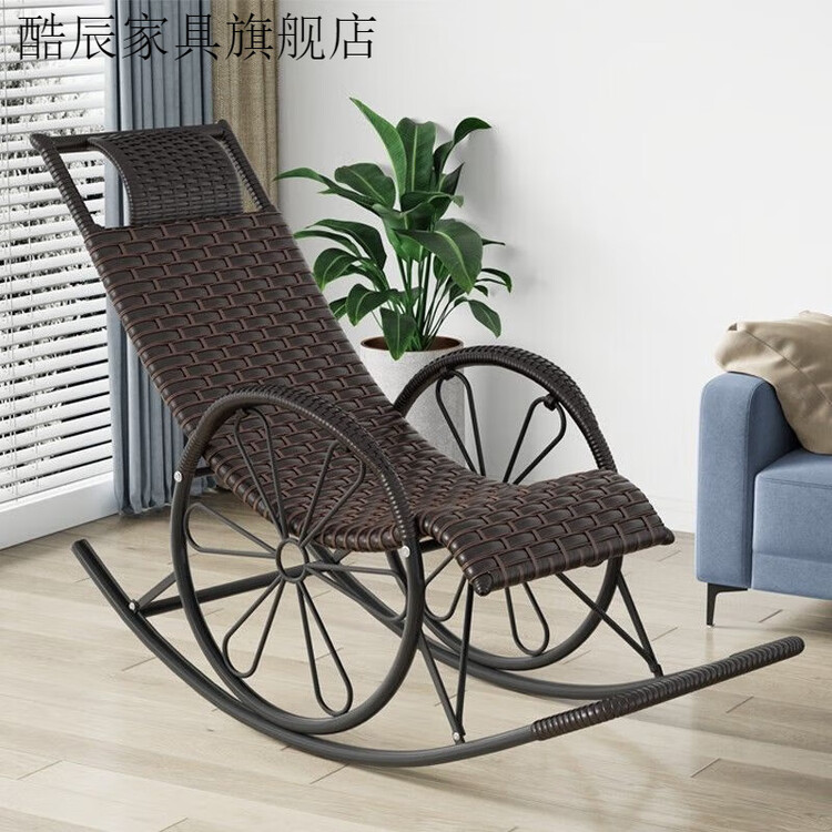 FANCYCHIC Кресло-качалка из ротанга для взрослых, черное