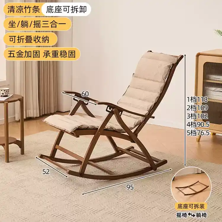 Bamboo Strip Rocking Chair + Horse Hoof Velvet Seat Cushion