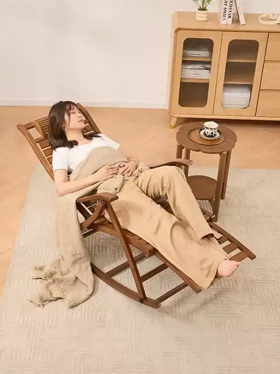 Bamboo Strip Rocking Chair + Horse Hoof Velvet Seat Cushion