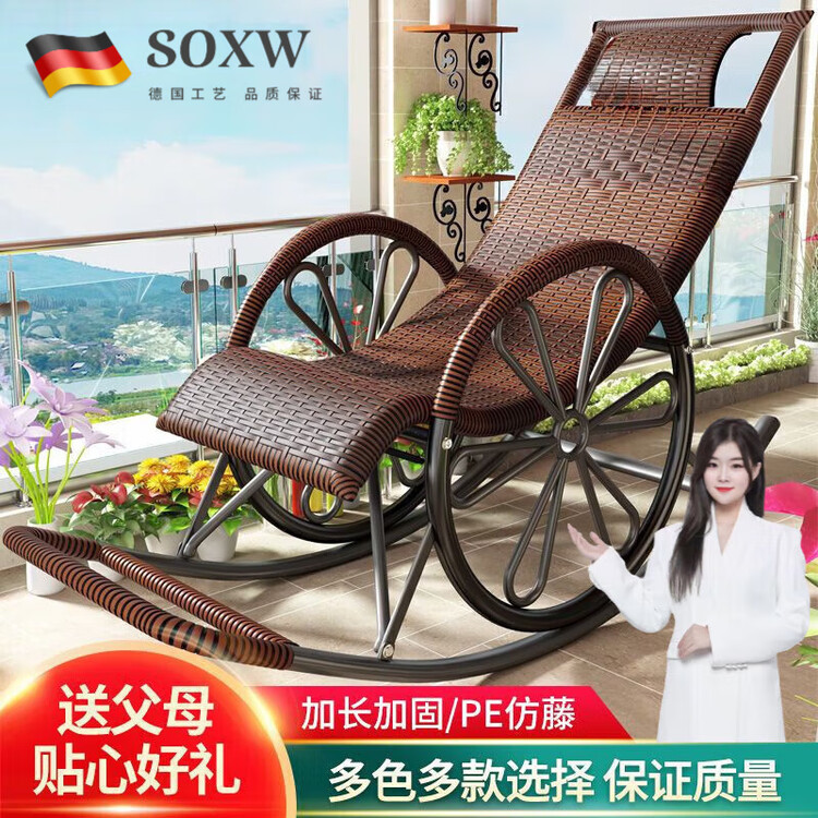 Fantasy Кресло-качалка из ротанга для взрослых, модель basic, цвет brown-yellow