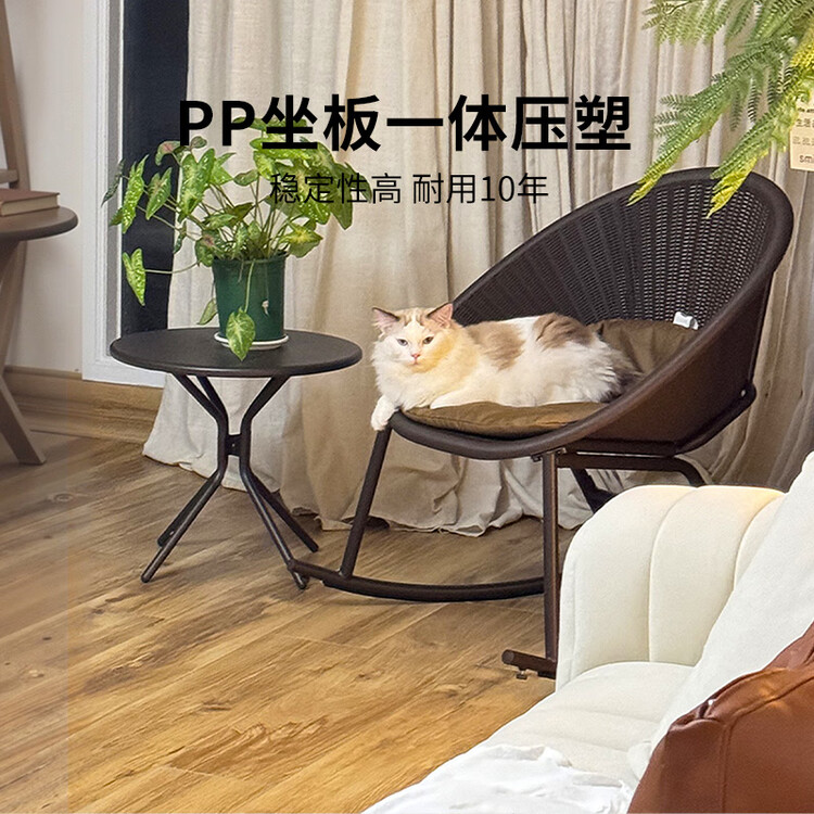 Создайте уютный уголок для релаксации с помощью этого современного кресла-качалки. Главной особенностью модели является использование технологии цельного литья (интегрированное прессование PP-пластика), что делает сиденье невероятно прочным и долговечным в отличие от обычного плетеного ротанга. Фактура поверхности стилизована под натуральное плетение, придавая мебели эстетичный и дорогой вид, при этом она легко моется и не боится когтей домашних животных.