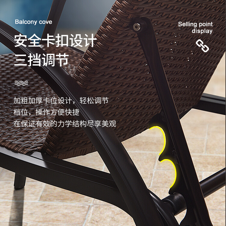 Каркас выполнен из цельнолитого алюминиевого сплава с антикоррозийным покрытием, обеспечивающим надежность и защиту от ржавчины даже при высокой влажности. Конструкция кресла продумана до мелочей: усиленный механизм регулировки позволяет зафиксировать спинку в одном из трех положений, обеспечивая оптимальную поддержку спины.