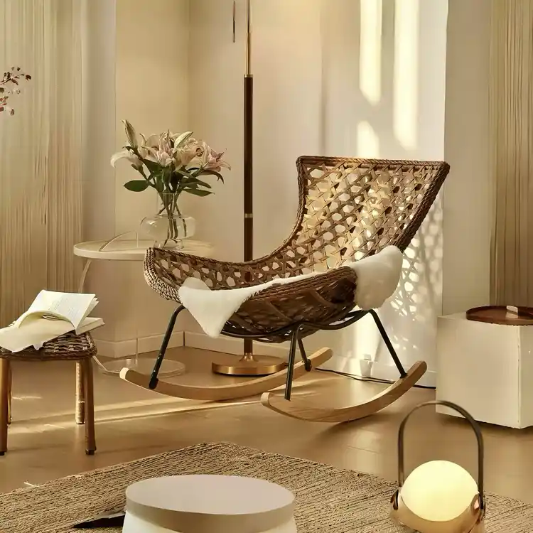 Yu Senyi Кресло-качалка из ротанга с подушками, extra large, handmade