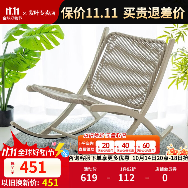 Purple Leaf Кресло-качалка Menglu из ротанга с подушкой