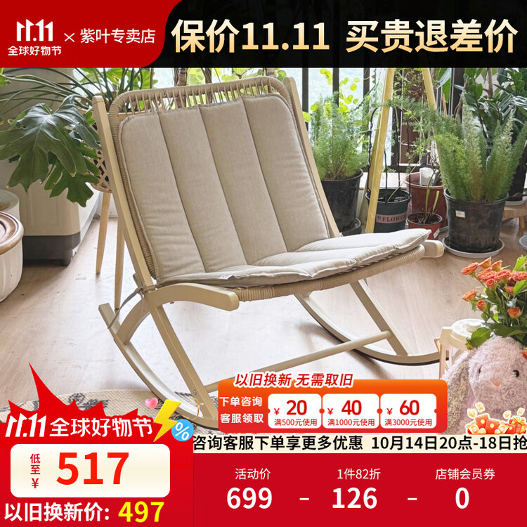 Purple Leaf Кресло-качалка Menglu из ротанга с подушкой 14 918₽