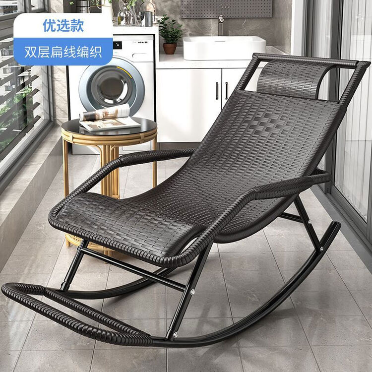 Fantasy Кресло-качалка из ротанга, черное, Premium Double-Layer Flat Cable - Black