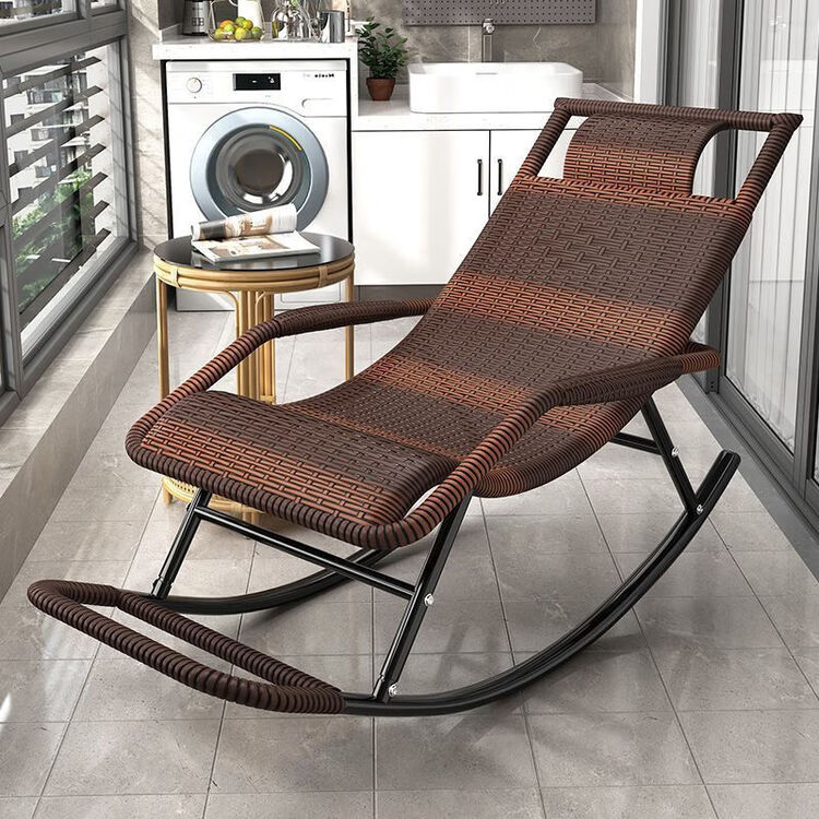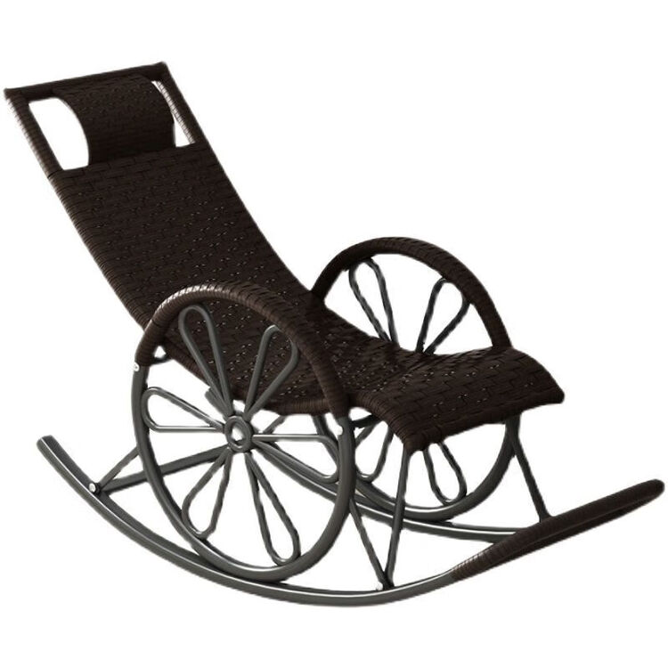 FANCYCHIC Кресло-качалка из ротанга серо-белое с колесами