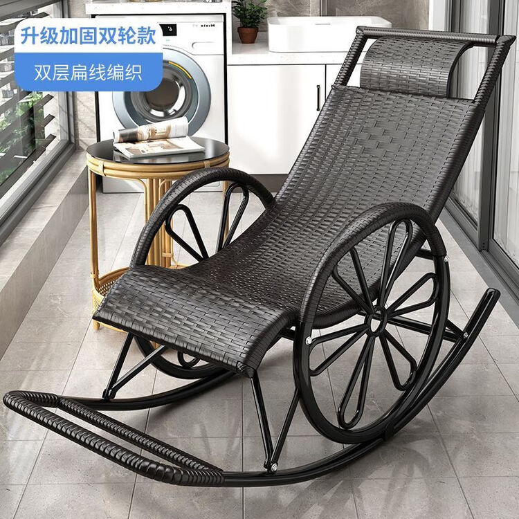 FANCYCHIC Кресло-качалка из ротанга для взрослых, Upgraded double-layer black