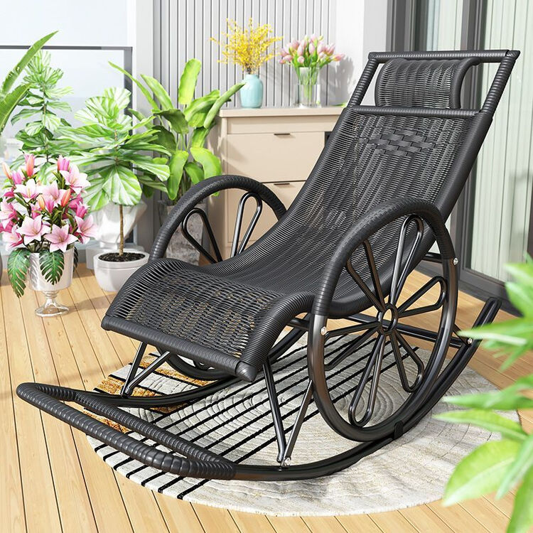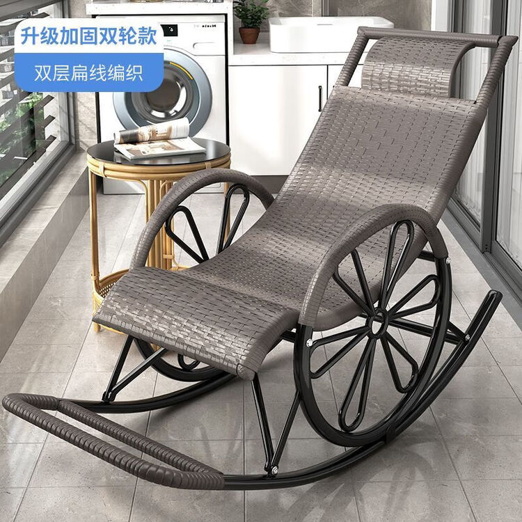FANCYCHIC Кресло-качалка из ротанга, двухслойное серо-белое