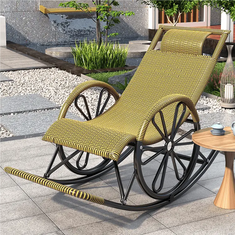 FANCYCHIC Кресло-качалка из ротанга, двухслойное, серебристо-серое