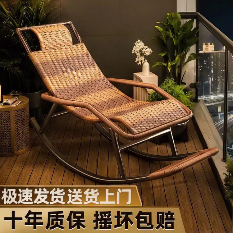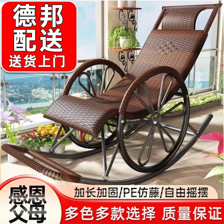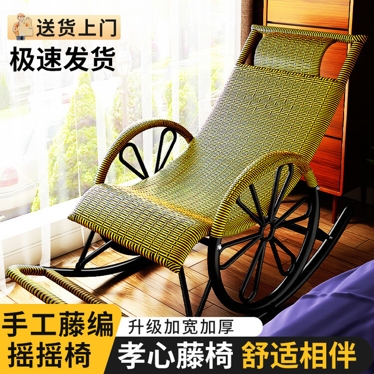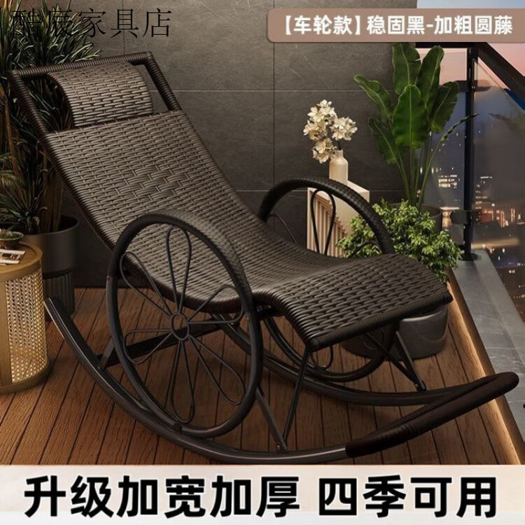 FANCYCHIC Кресло-качалка из ротанга с колёсами, black round line