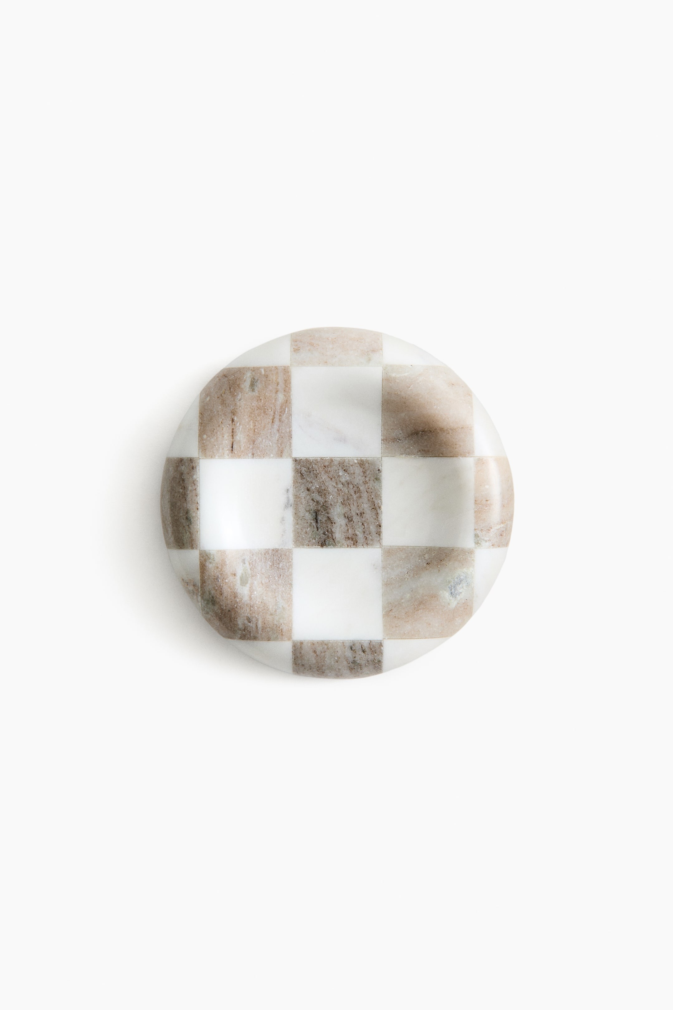 Мраморный поднос с плавно закругленными краями и клетчатым узором. Идеально подходит для хранения ювелирных изделий или других мелочей. Мрамор — натуральный материал, поэтому отдельные экземпляры могут отличаться по цвету.