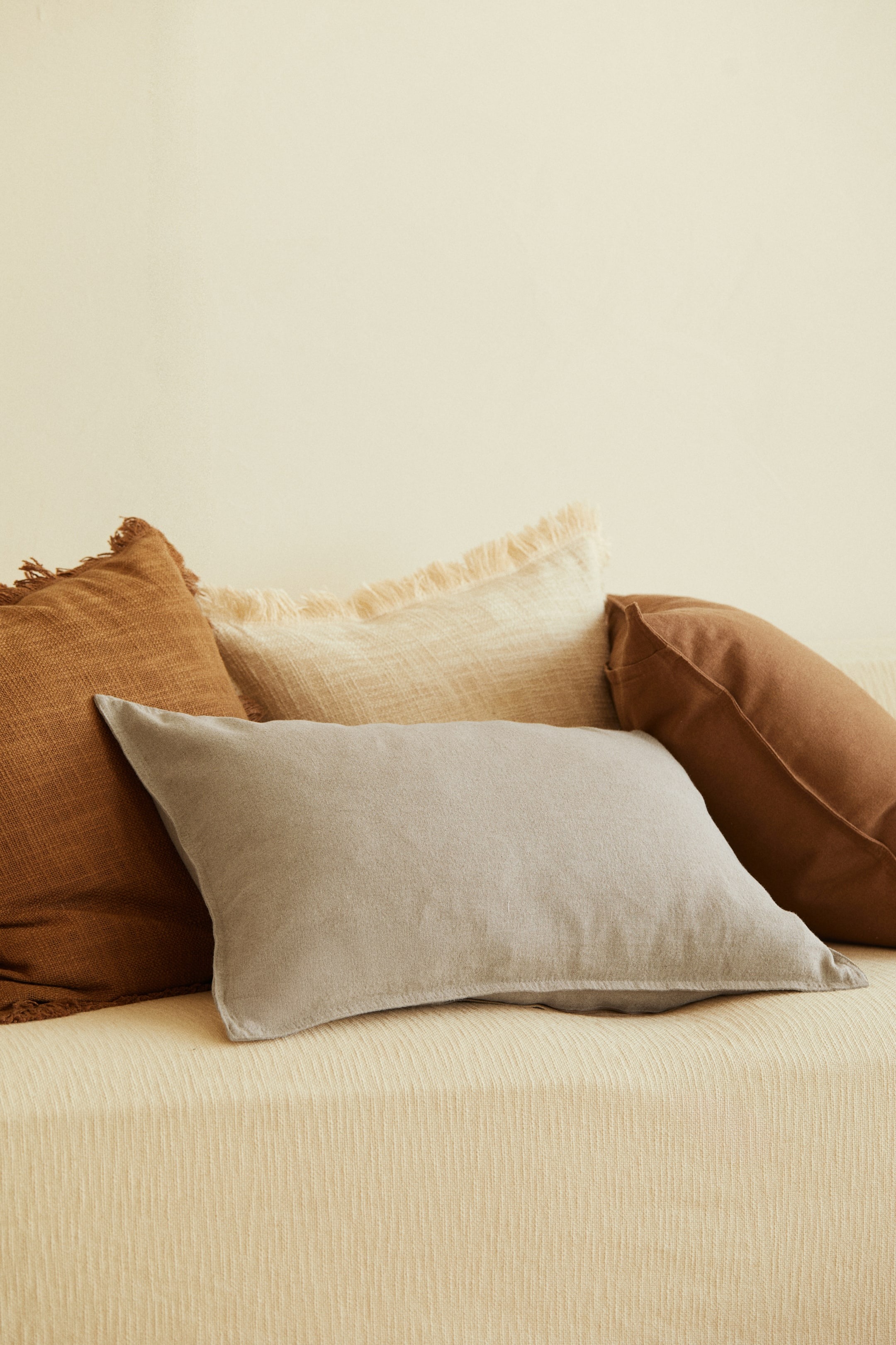 Классическая тканая наволочка из смеси льна и хлопка. Края прошиты, сзади потайная молния.