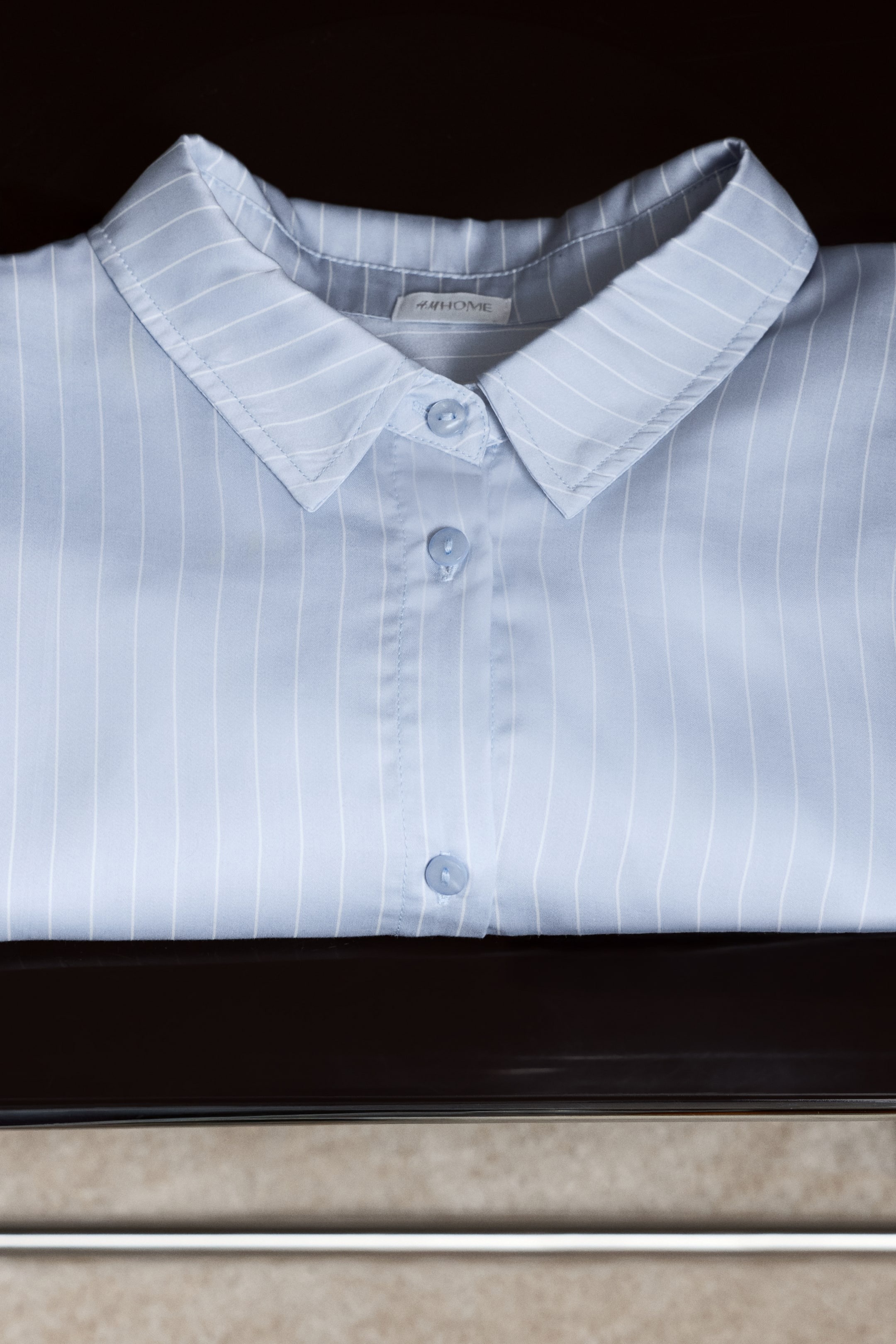 Пижамный комплект из ткани лиоцелл, состоящий из рубашки и брюк. Рубашка с длинными рукавами имеет воротник, застежку на пуговицы и закругленный низ. Брюки имеют эластичный пояс на шнурке и боковые карманы. Ткань лиоцелл очень мягкая, немнущаяся и красиво драпируется.