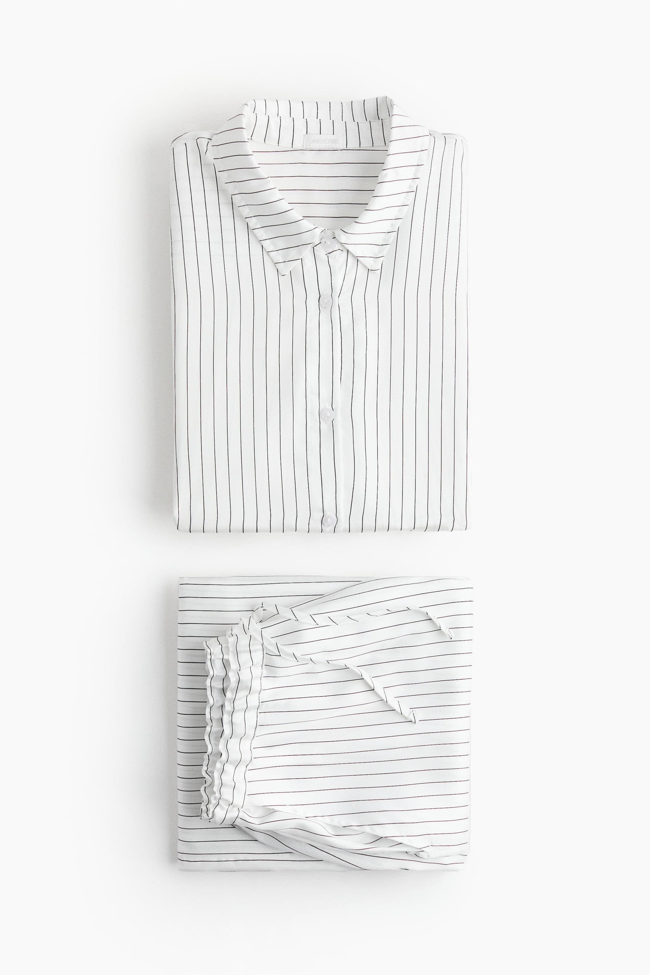 Пижамный комплект из ткани лиоцелл, состоящий из рубашки и брюк. Рубашка с длинными рукавами имеет воротник, застежку на пуговицы и закругленный низ. Брюки имеют эластичный пояс на шнурке и боковые карманы. Ткань лиоцелл очень мягкая, немнущаяся и красиво драпируется.