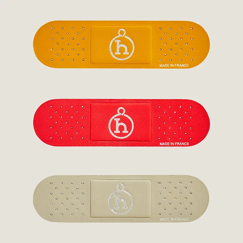 Уникальный аксессуар для творческой персонализации повседневных вещей от Hermes. Каждый набор — это сюрприз, где сочетание цвета и типа кожи варьируется от изделия к изделию, делая ваш экземпляр единственным в своем роде. Многоразовые кожаные стикеры-пластыри вдохновлены идеей бережного ремонта и долговечности. Они функциональны и декоративны: с их помощью можно скрыть камеру ноутбука, создать мини-галерею из фото и записок, закрепить край сумки или просто добавить характерный акцент любой поверхности.