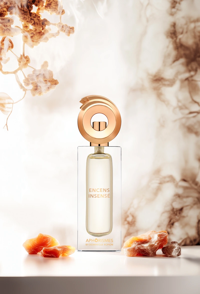Стилистические вариации, которые мгновенно удивляют, предлагая новый способ описать и ощутить вихри ладана. За пряной атакой имбиря и ягод можжевельника в воздух взмывает взрывная лимонно-альдегидная вспышка. Турецкая роза поднимается, ослепительная, припорошенная фиалкой, и раскрывается в водном букете с озоновой аурой. Свежесть ладана витает на фоне, окрашенная искусно созданным смолистым, слегка животным аккордом, который переплетается с пикантным имбирём. В завершение — мускусный горизонт, простирающийся так далеко, как видит глаз, закрученный в выразительные волюты дыма.