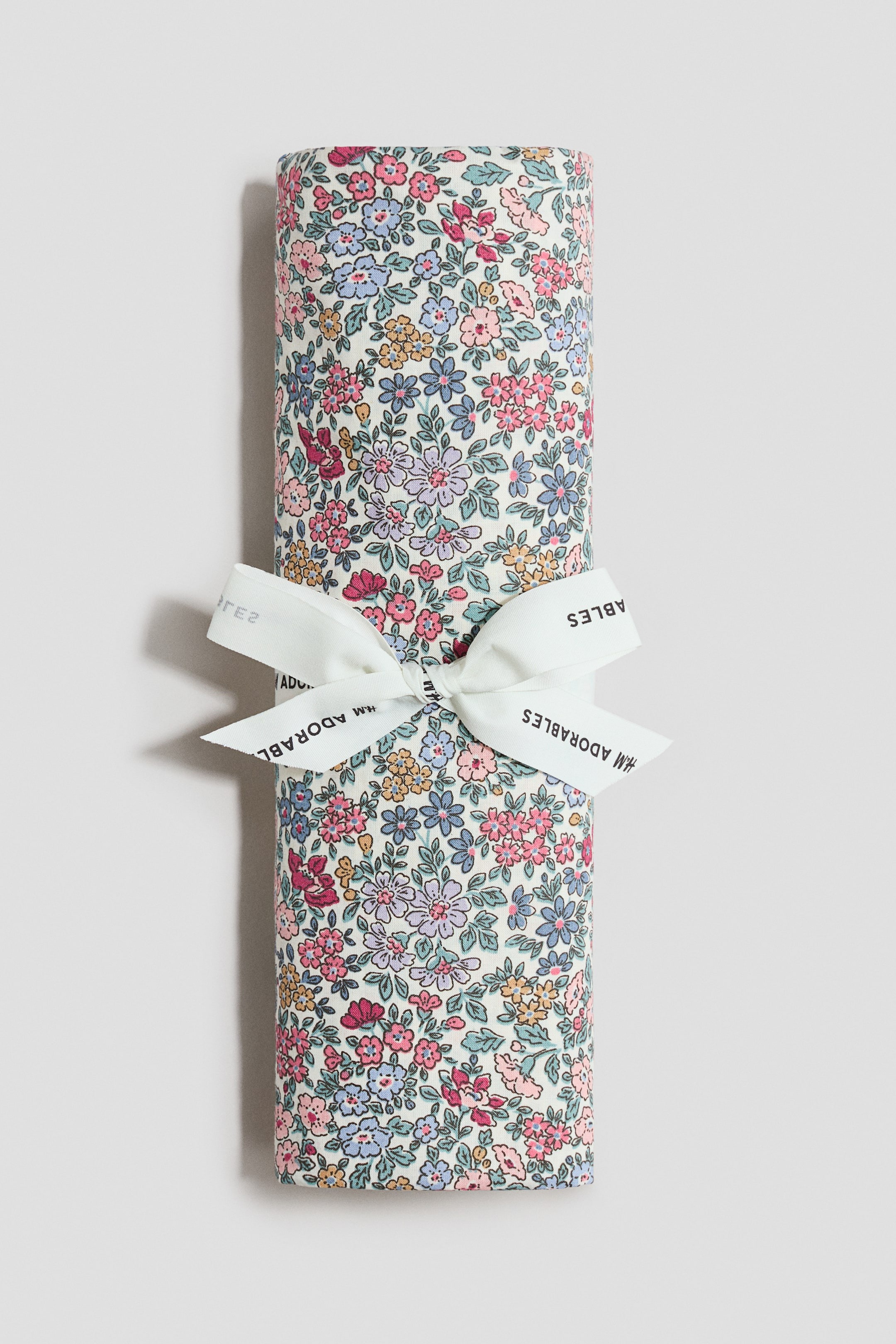 Простыня на резинке из хлопкового перкаля с цветочным принтом. Плотность ткани 200 нитей на дюйм. Перкаль легкий, мягкий и дышащий.