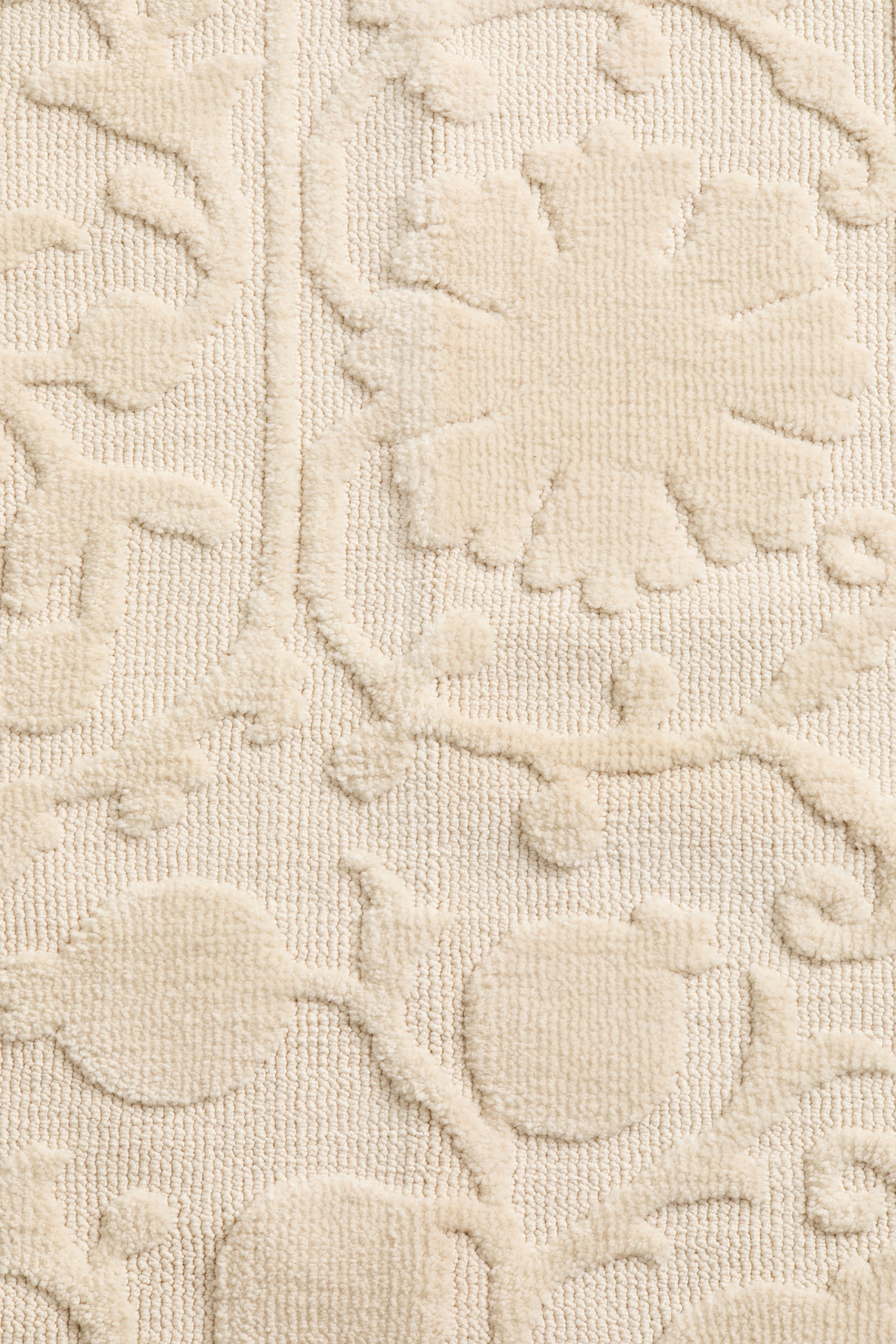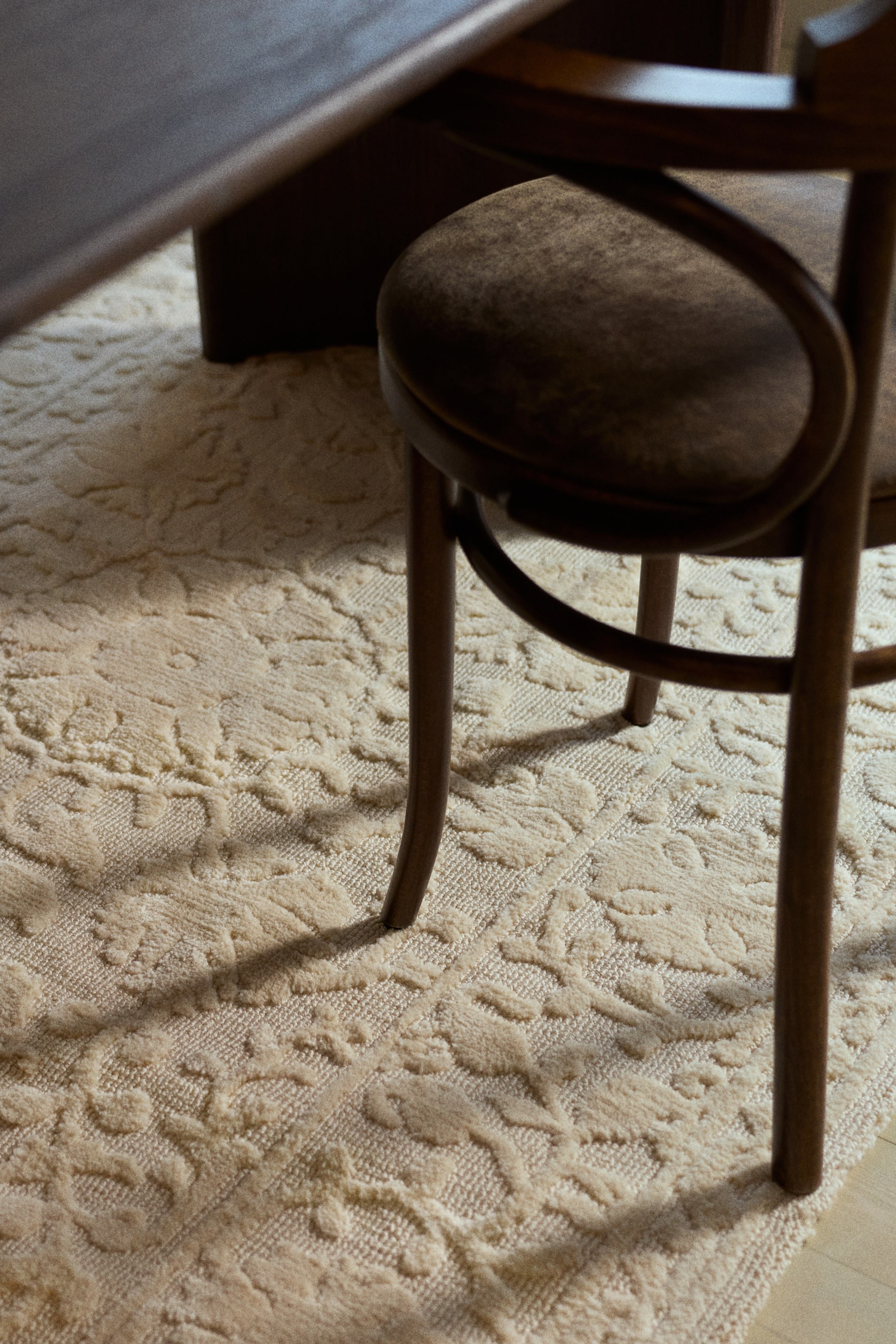 Уютный вязаный ковер с рельефным узором из пряжи, идеально подходящий для создания гармоничного интерьера.