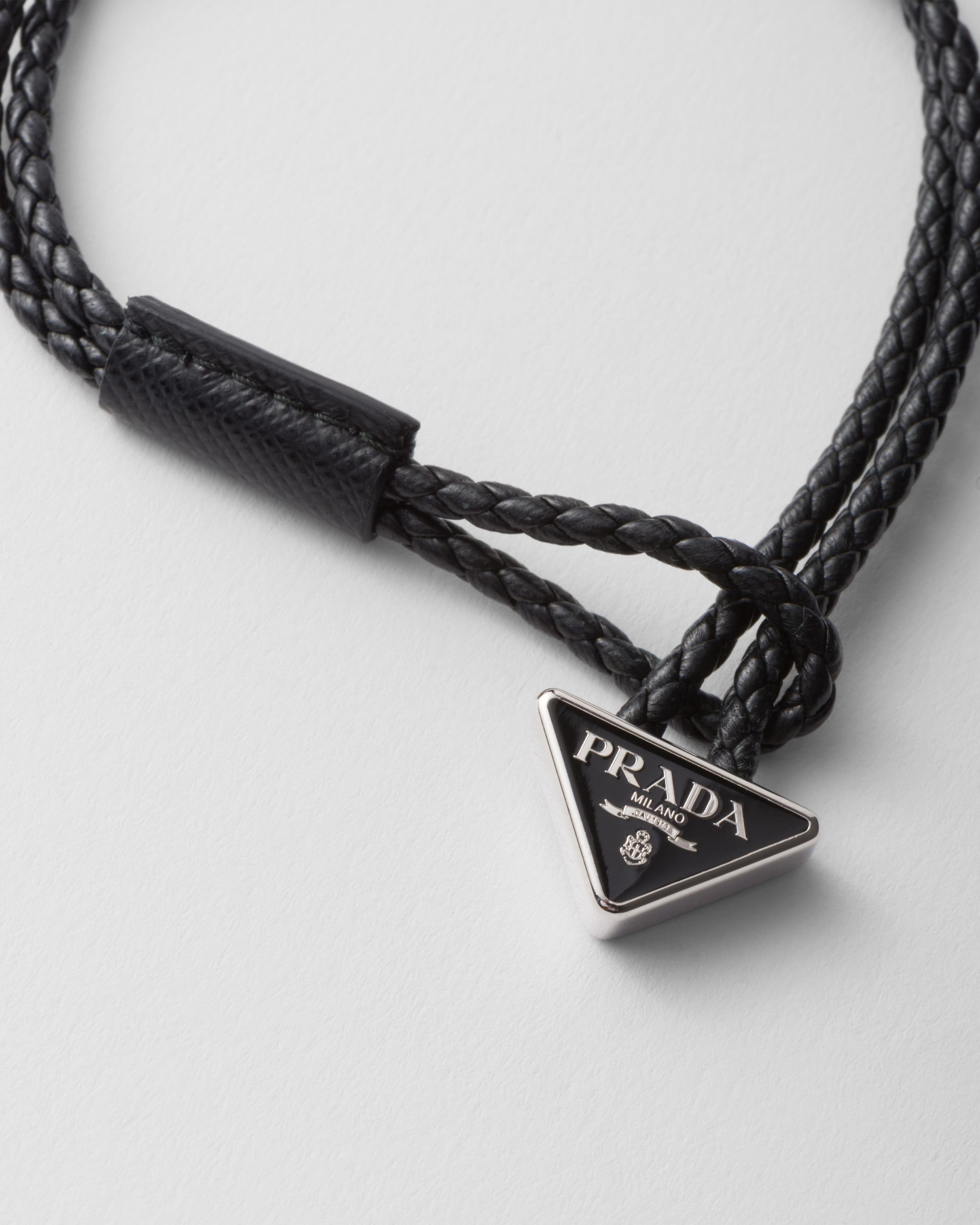 Браслет из плетеной кожи наппа Prada, черный 46 986₽